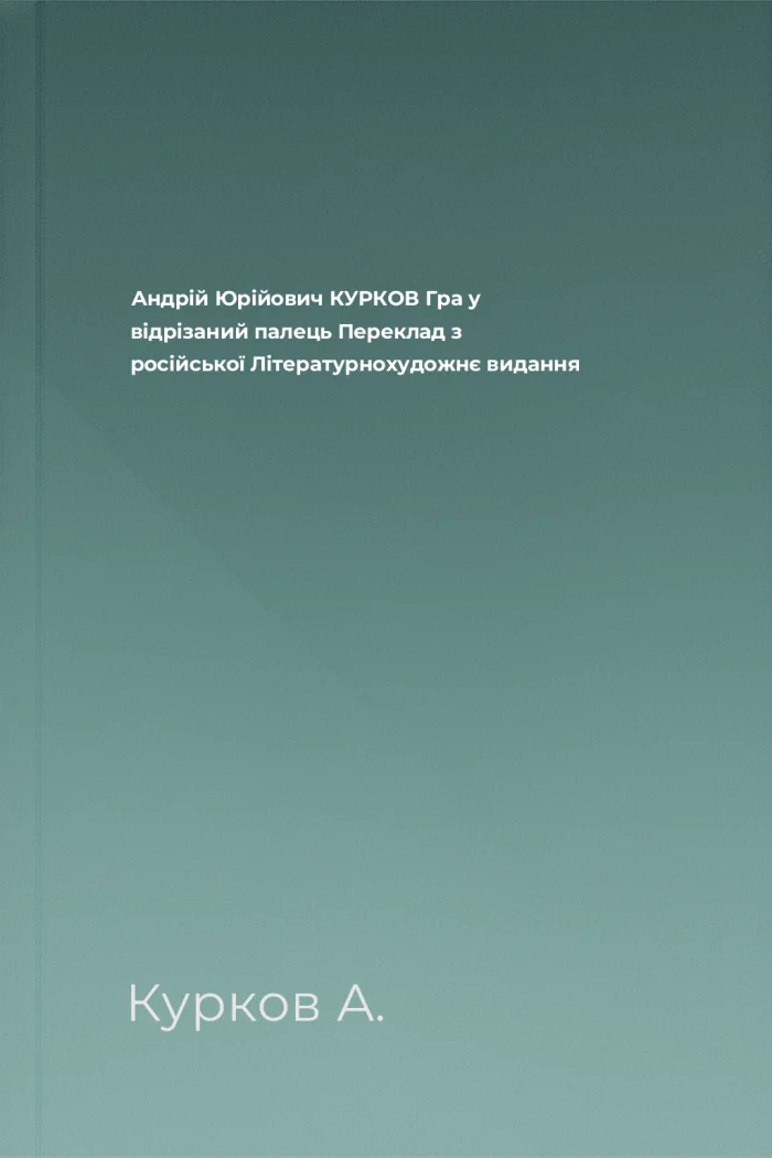 Андрій Юрійович КУРКОВ Гра у відрізаний палець Переклад з російської Літературнохудожнє видання