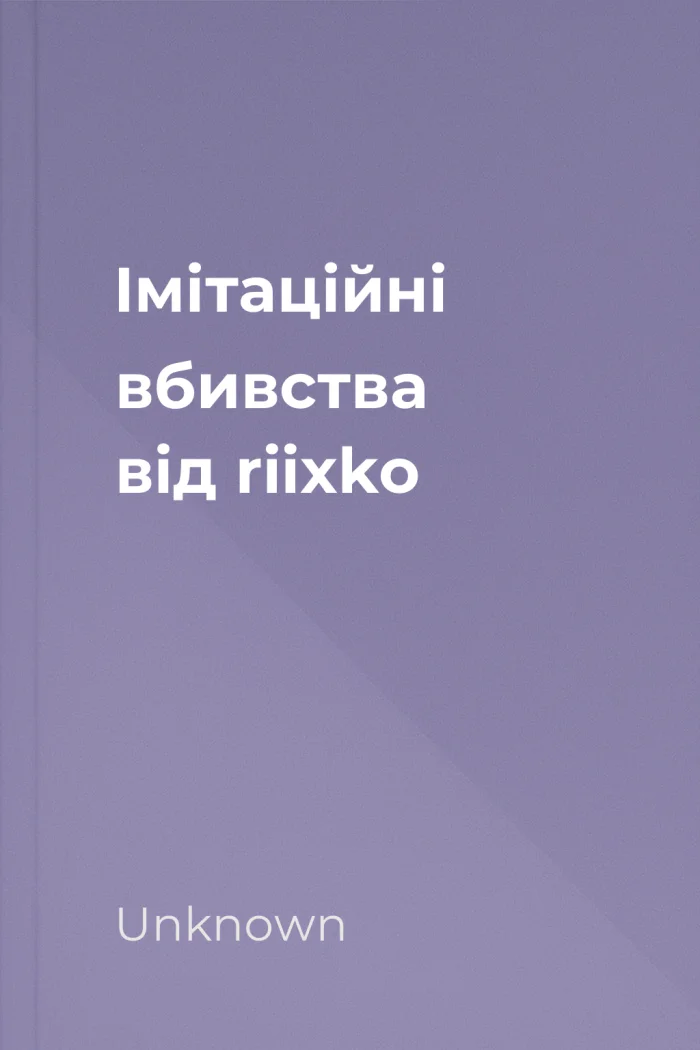 Імітаційні вбивства від riixko - це книга, яка захопить вас з перших рядків і не відпустить до самого кінця. Це дійсно захоплююче твір, який розкриє перед вами нові горизонти детективної літератури та залишить незабутні враження.