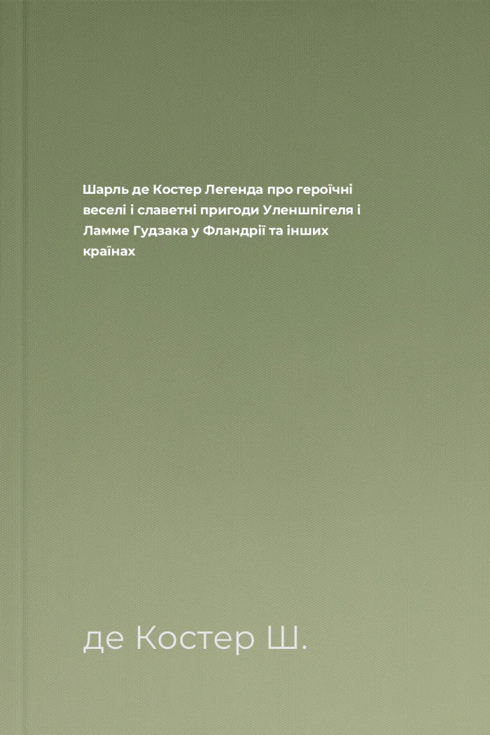 Шарль де Костер Легенда про героїчні веселі і славетні пригоди Уленшпігеля і Ламме Гудзака у Фландрії та інших країнах