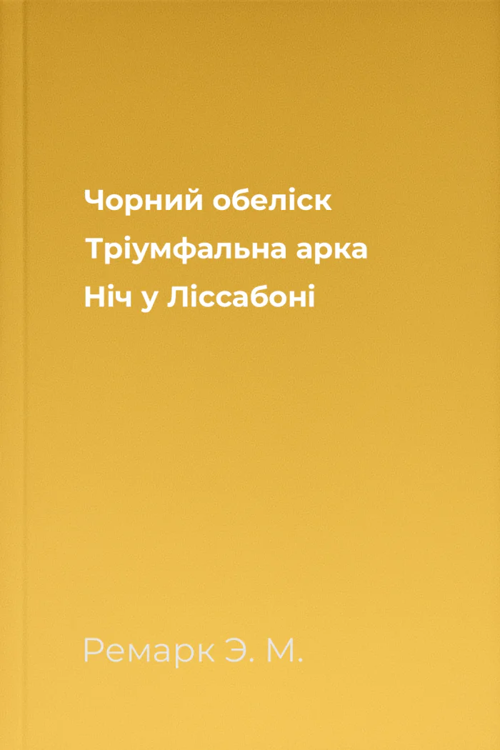 Чорний обеліск. Тріумфальна арка Ніч у Ліссабоні - це шедевр світової літератури, який залишає слід у серцях читачів і залишається актуальним у будь-який період історії. Ця книга варта уваги кожного, хто цікавиться філософією, мораллю та людськими стосунками.