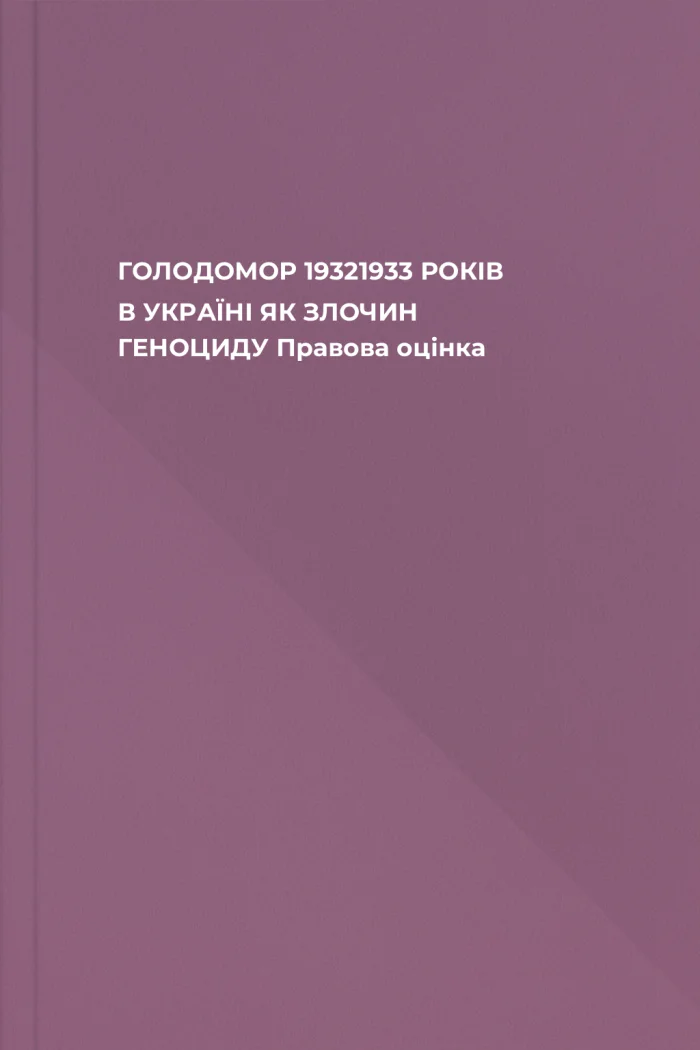 ГОЛОДОМОР 19321933 РОКІВ В УКРАЇНІ ЯК ЗЛОЧИН ГЕНОЦИДУ Правова оцінка