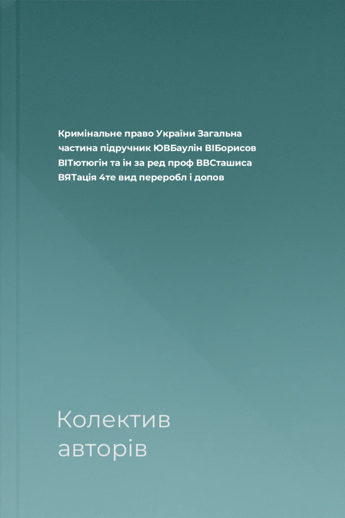 Кримінальне право України Загальна частина підручник ЮВБаулін ВІБорисов ВІТютюгін та ін за ред проф ВВСташиса ВЯТація 4те вид переробл і допов