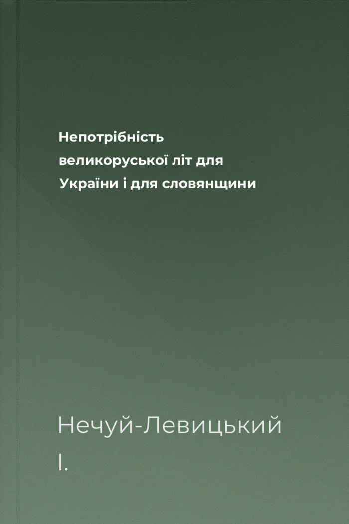 Непотрібність великоруської літ для України і для словянщини