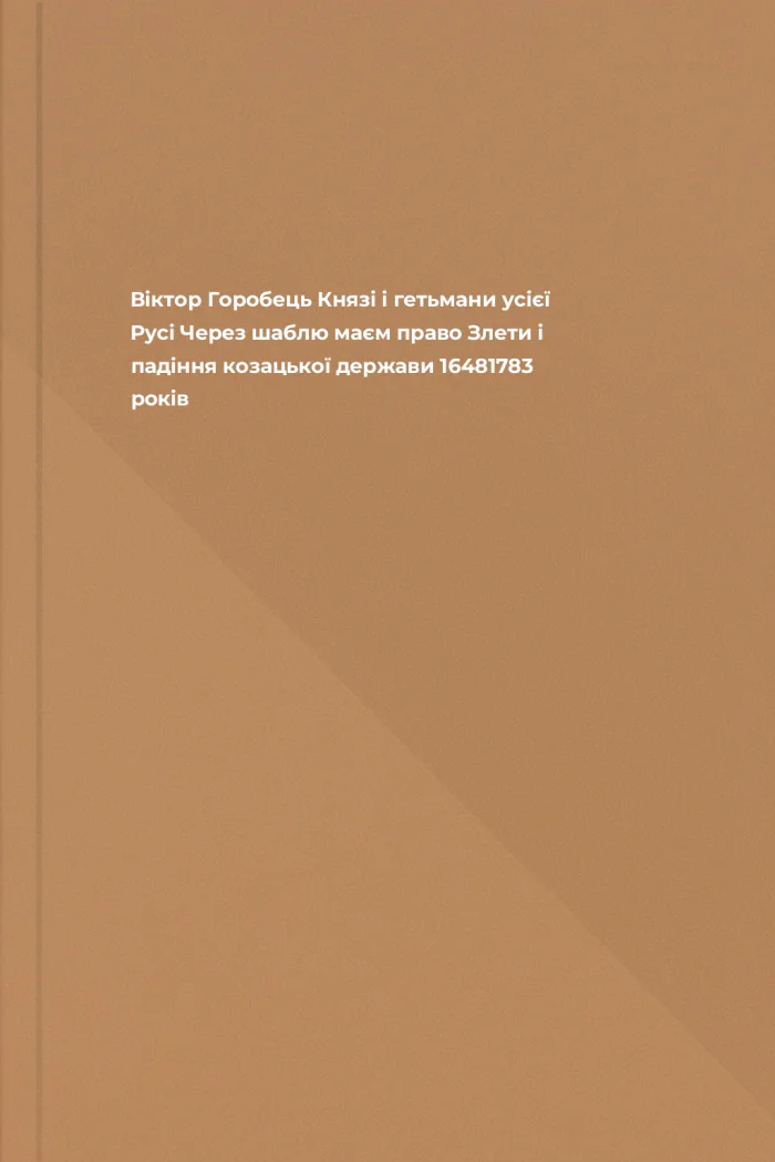 Віктор Горобець Князі і гетьмани усієї Русі Через шаблю маєм право Злети і падіння козацької держави 16481783 років