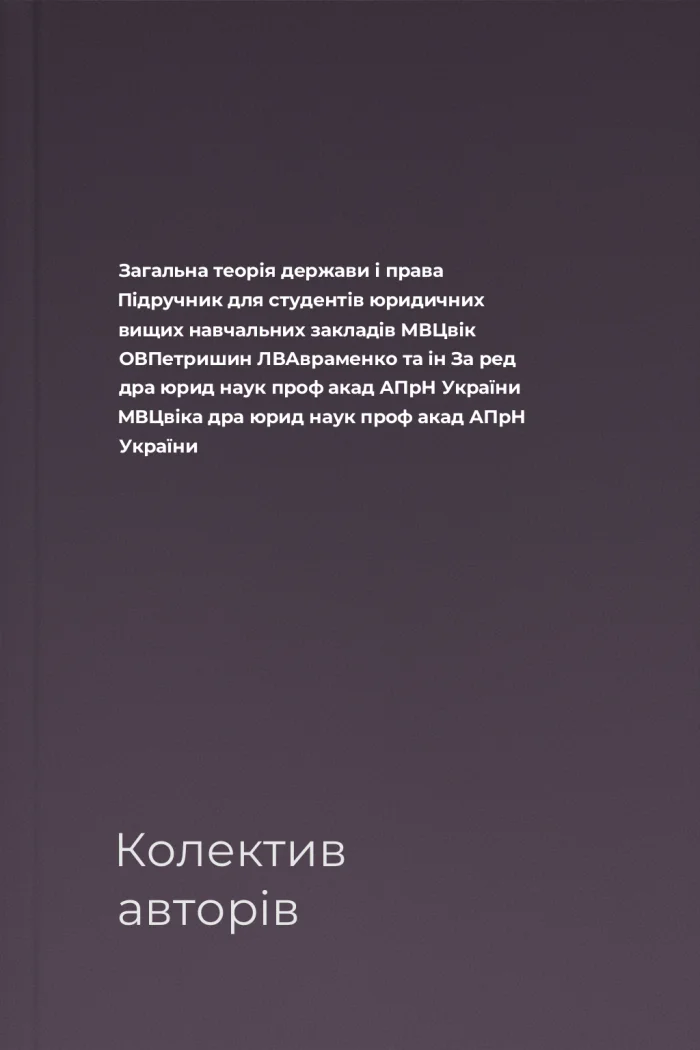 Загальна теорія держави і права Підручник для студентів юридичних вищих навчальних закладів  МВЦвік ОВПетришин ЛВАвраменко та ін За ред дра юрид наук проф акад АПрН України МВЦвіка дра юрид наук проф акад АПрН України